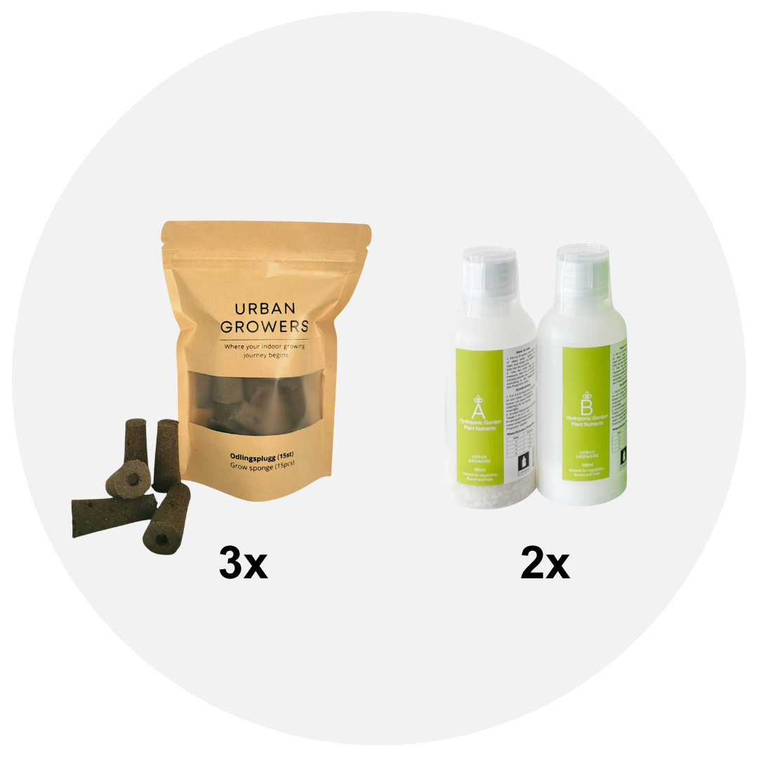 Håll din hydroponiska trädgård frodig med vårt påfyllnadspaket. Beställ nu och njut av en riklig skörd året runt!