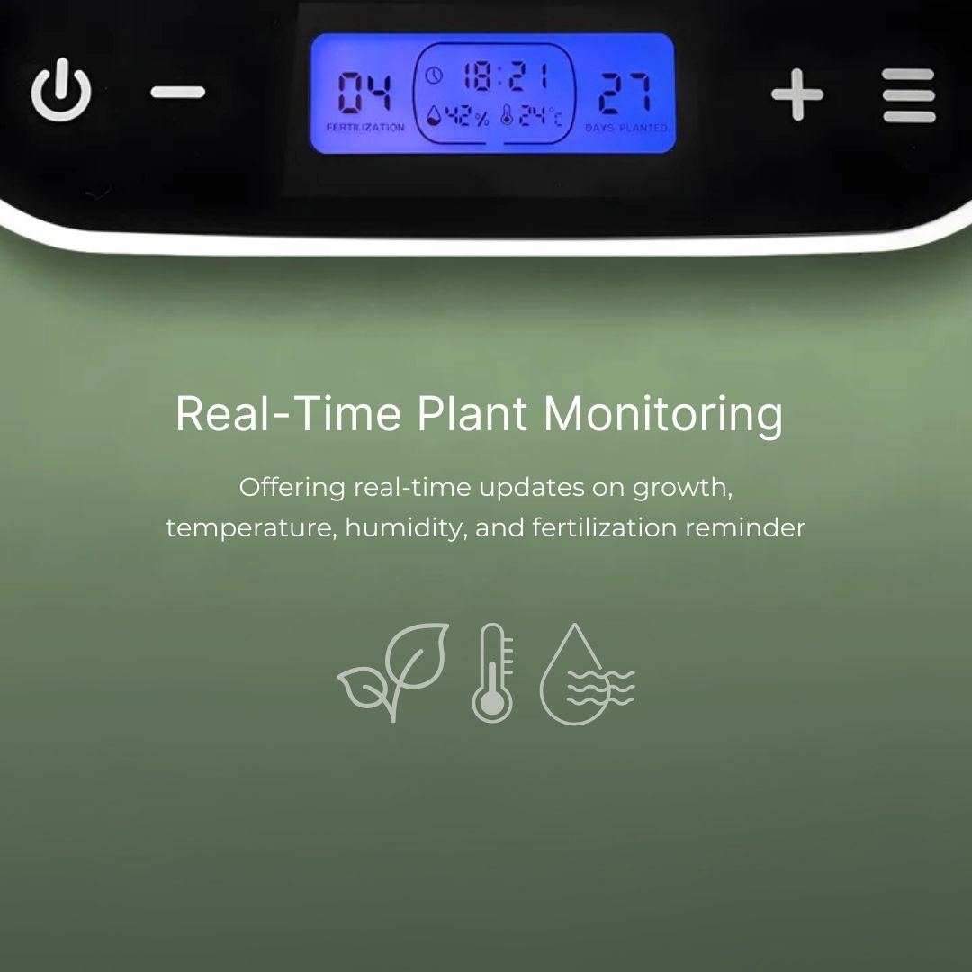 Odla färska grönsaker direkt i hemmet med Urban Oasis Pro-S12, ett komplett system designat för enkel odling. Realtids-växtmonitorpanelen ger dig viktiga detaljer som planteringsdagar, temperatur, luftfuktighet och påminnelser om näringslösning påfyllning och rengöring, så att du enkelt kan hålla koll på varje aspekt av dina växters behov. Med 12 odlingspoddar, automatiserade cykler för den inbyggda vattenpumpen och LED-växtbelysning, säkerställer systemet att dina växter får konsekvent, dygnet runt omvårdnad, vilket gör hemodling enkel, effektiv och bekymmersfri.